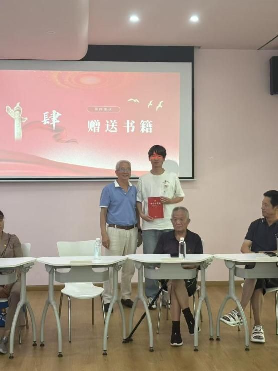 活动尾声,主持人总结道:“今天的对话,是历史与当下的交汇,是初心与使命的接力。”随后,胡宗敬、李书生等离退休老同志向党支部郑重赠送《初心铸忠诚:35位共产党员的赤子之心》一书。“书中每一个故事都是初心的缩影,希望同学们接过接力棒,让忠诚与担当在新时代闪光。”老同志们的寄语饱含期待,青年学子纷纷表示:“将以老党员为榜样,把入党初心写在实践中,用青春奋斗践行铮铮誓言。”
