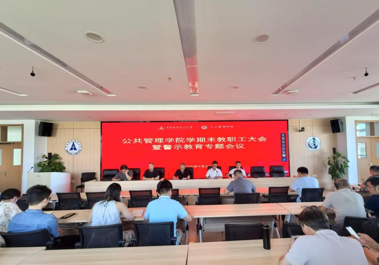 新闻网讯(通讯员 向双申)7月3日下午,学院召开学期末教职工大会暨警示教育专题会议,会议由张广科院长主持,学院党政领导班子成员和全体教职工参加会议。