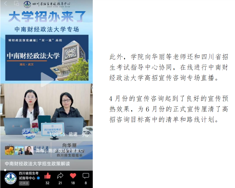 此外,在学校本科招生办精心部署下,6月18日,石玉老师和保研至浙江大学的行政管理2102班优秀本科毕业生陈果同学,开展米兰电竞·(中国区)四川、天津专场线上高招专场宣讲会。