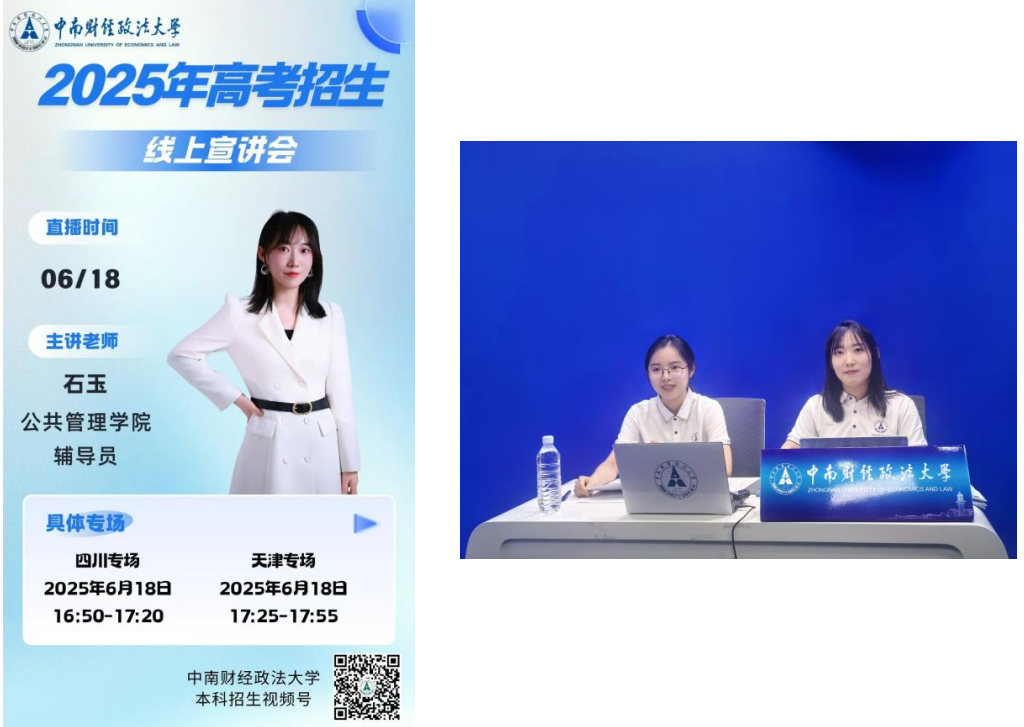 此外,在学校本科招生办精心部署下,6月18日,石玉老师和保研至浙江大学的行政管理2102班优秀本科毕业生陈果同学,开展米兰电竞·(中国区)四川、天津专场线上高招专场宣讲会。