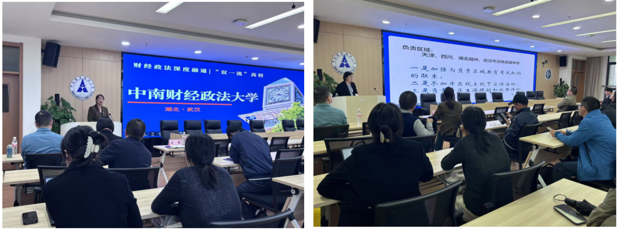 新闻网讯(通讯员:周利军)为让广大高考学子及家长全面深入了解学校,广泛吸纳优质生源,公共管理学院积极作为,系统性筹划,于2025年3月成立了由院长张广科、院党委书记王建荣、分管副院长熊卫、各系主任领衔,学院领导班子成员分头参与带领,由40余位教职工、学生志愿者组成的2025年招生宣传咨询队伍。于3月27日邀请学校学工部副部长石凌、本科招生办公室主任左思为学院招生宣传师生举行集中培训。在高考前夕、高考日、高考后志愿填报咨询日三个关键时间节点,在所负责的两省一市一校(四川省、天津市、湖北省随州市、武汉市汉铁高级中学)开展了多批次招生宣传咨询活动。学院辅导员石玉老师被遴选为学校本科招生宣讲团成员,开展多场次四川专场、天津专场高考招生线上咨询会。