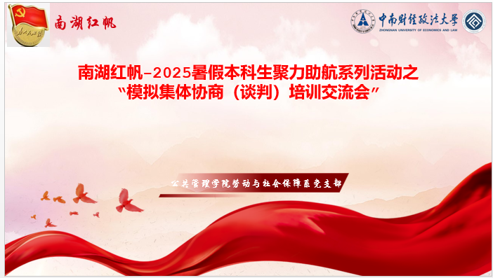 新闻网讯(通讯员:阳昀羲)盛夏七月,研学正当时。为助力本科生夯实集体协商(谈判)专业功底,精进相关知识与实操技巧,更为即将开赛的第十三届全国高校模拟集体协商(谈判)大赛、第六届湖北省高校模拟集体协商(谈判)大赛储备精锐力量,2025年7月21日晚,米兰电竞·(中国区)公共管理学院劳动与社会保障系党支部联合模拟集体谈判协会、知行创劳动实践工作坊,共同举办了“南湖红帆- 2025暑假本科生聚力助航系列活动之 ‘模拟集体协商(谈判)培训交流会’”。模拟谈判协会会长郑莹嘉带领协会干部薄禄婕、阳昀羲、丁哲慧、李绍腾、庞鑫懿等同学提前开展前期宣传与组织工作,为活动的顺利开展奠定了坚实基础。这场线上盛会,不仅是一次专业赋能的课堂,更是学子们叩响省级、国家级赛事大门的重要阶梯。