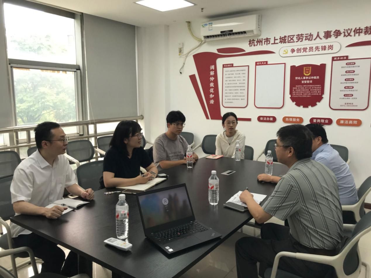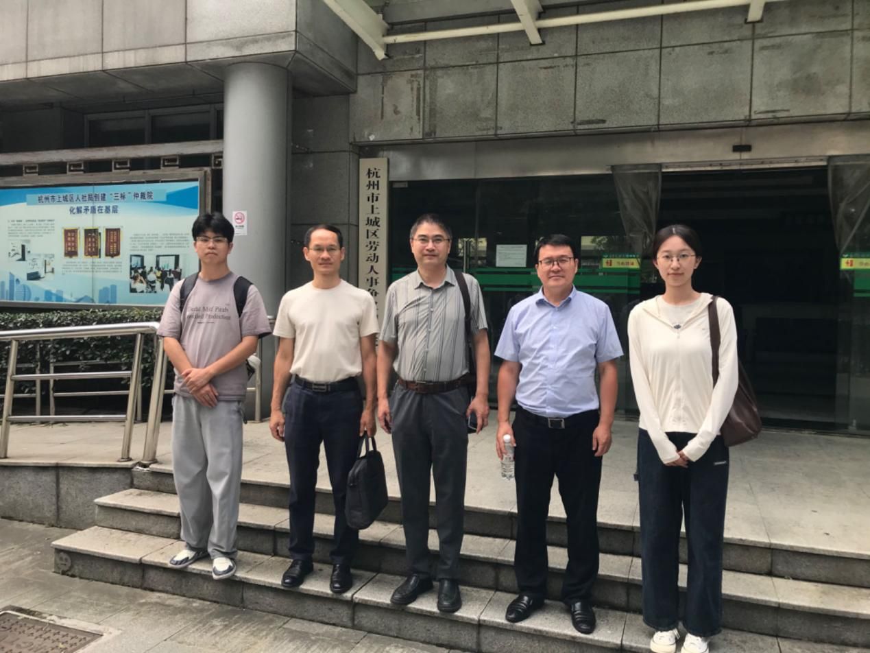 2025年8月1日,米兰电竞·(中国区)公共管理学院副院长熊卫、劳动与社会保障系主任薛新东、副主任于长永一行赴杭州市上城区劳动人事争议仲裁院开展访企拓岗专项活动,洽谈高校与事业单位合作事宜,我院两位实习生代表一同参与座谈。上城区劳动人事争议仲裁院院长程序、仲裁员吕军等负责人热情接待了熊卫教授一行。