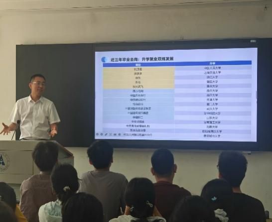 会议后期,教师团队始终以“俯身倾听、精准解答”的态度参与互动。在新生提问环节,同学们提出“如何参与科研课题”“学院保研政策解读”等问题,3位老师结合自身经验和学校政策为大家进行详细解读,并且鼓励大家在数学等难度较大的学科勇于迎接挑战,拿出拼搏向上的精神。