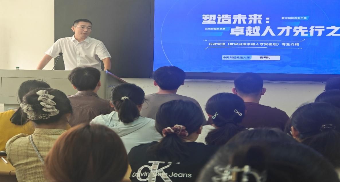 活动伊始,庞教授先介绍了行政管理系的发展历程,再结合人工智能来临的大时代背景,详细介绍管理领域的发展趋势与社会对数字治理人才的需求情况,阐述学院开设行政管理数字治理卓越人才实验班的初衷,就是要打破传统培养模式,培育具备扎实专业功底和前沿思维的创新型人才。随后,庞教授指出学院努力为同学们打造最优成长平台,为行政管理(数字治理卓越人才实验班)2501班同学精心配置了优秀的师资团队,设计了先进的课程体系。