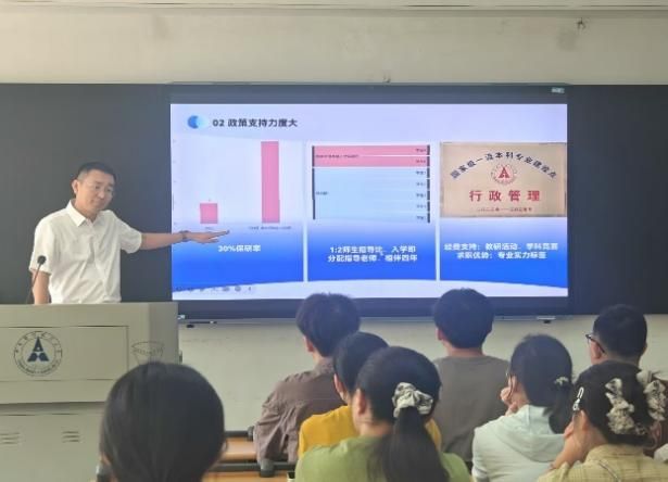 此外,庞教授在成果展示与未来规划环节,向同学们介绍行政管理(数字治理实验班)2401班学风建设的优良成果和往年学长的毕业去向,使得同学们了解到本专业的就业前景与未来升学路径、优势资源及发展机遇,对“如何在大学阶段为职业发展和学业深造做好准备”有了良好的认知。