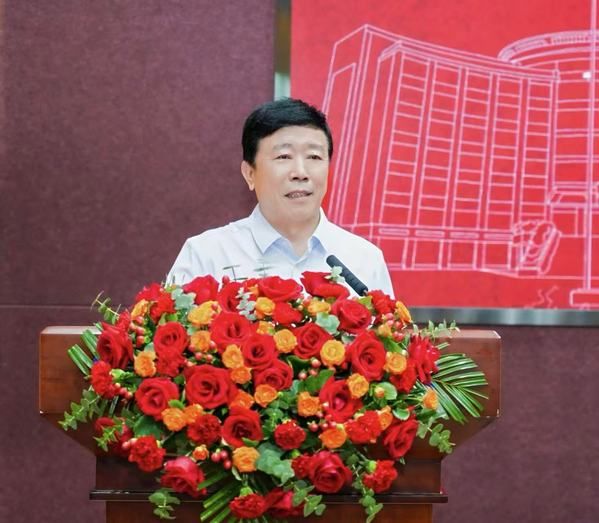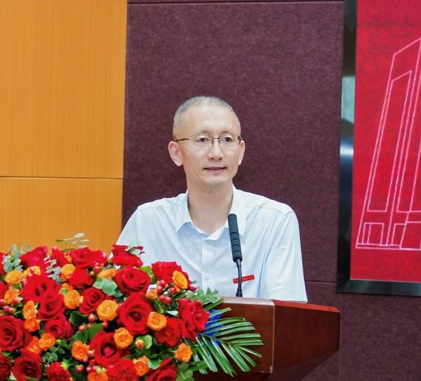 庆典在庄严肃穆的国歌声中拉开帷幕。校党委副书记、纪委书记申祖武出席大会,他代表校党委、行政向学院全体教职员工致以最诚挚的节日问候。他在讲话中就公共管理学院“丹心耀中南”这一师德师风建设品牌作了深度解读,“丹心”指红色的心,引申为赤诚忠贞的象征,表达对国家、理想的忠诚情怀。南宋民族英雄文天祥“人生自古谁无死,留取丹心照汗青”,是将个体生命价值与社会历史评价相联结。南宋爱国诗人陆游“一寸丹心惟报国”,则通过个人空间量化来表达赤诚报国的强度和决心。公共管理学院提出“丹心耀中南”,就是要通过赤诚忠贞之心和智慧光耀之道,为中南大的改革发展和教育强国建设做出更大的贡献。