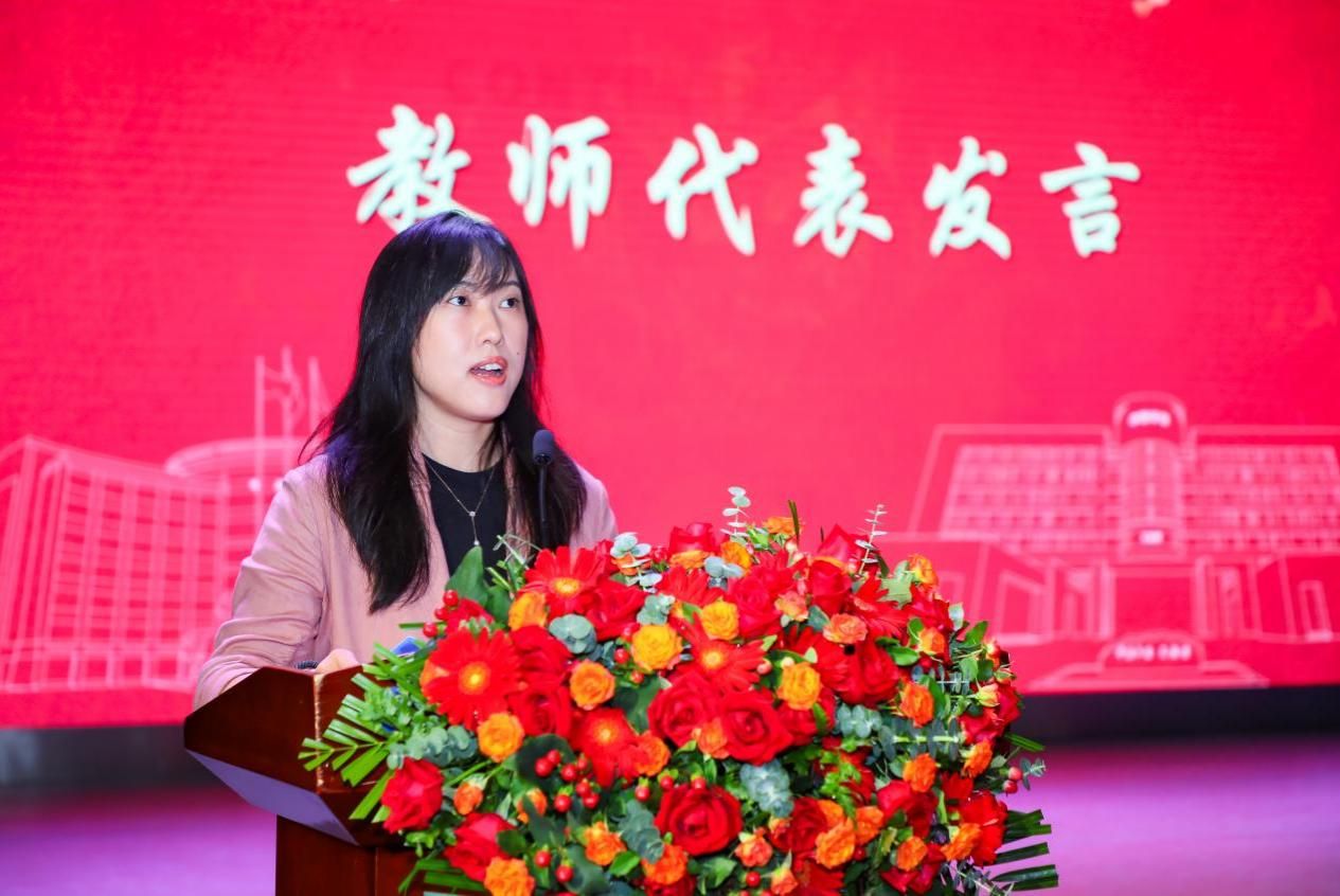 典礼第三项,劳动与社会保障系程欣副教授作为教师代表寄语新生。她阐释了学校与学院对新生成长的重要意义并分享三点感悟:一是“大学之道,在明明德”,要将修身立德置于首位,树立正确的世界观、人生观、价值观;二是“不弃微末,久久为功”,求学路上需重视点滴积累,以持之以恒的态度积蓄前进力量;三是勇担创新使命,以批判性思维审视问题,以创造性实践扎根社会,用所学知识服务社会、创造价值。最后,她祝愿全体新生青春无悔、梦想成真。