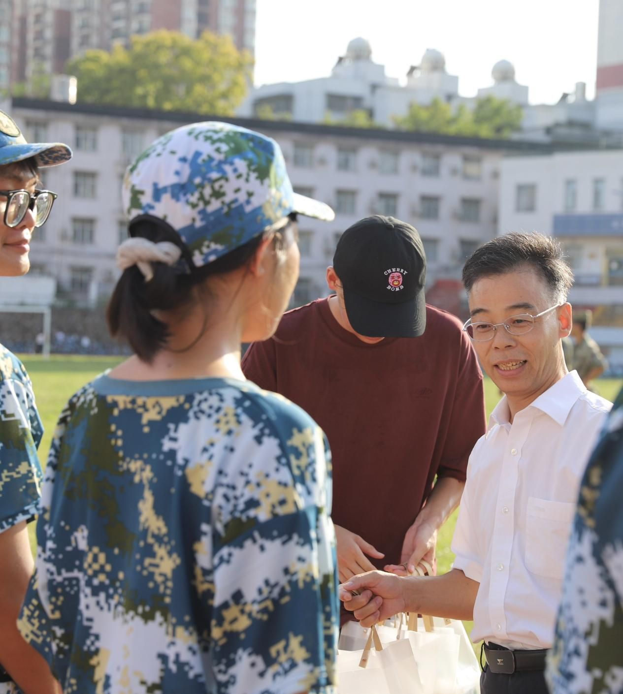 讲话环节后,领导们为新生及带训教官送上慰问物资,为新生们的砺兵之行增添动力,鼓励新生们继续以饱满的热情投入到军训之中。