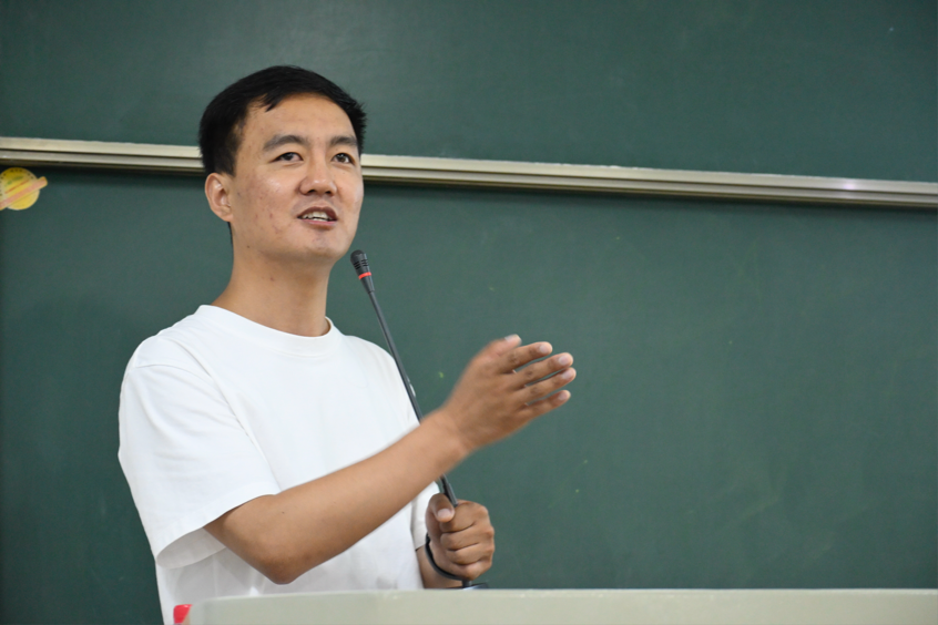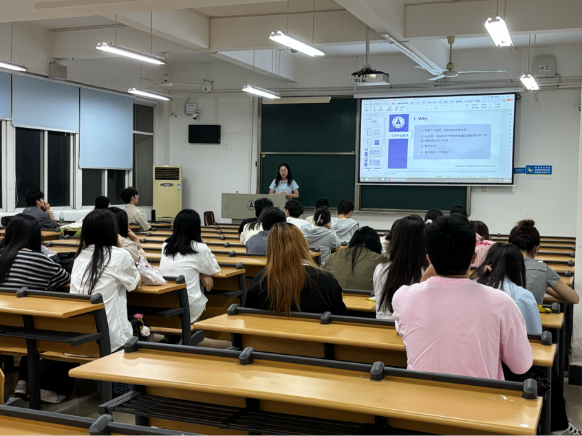 在本次活动中,四位嘉宾从研究生必修环节考核办法及学风建设与学术道德、创业经验、实习经验和论文写作经验这几个部分展开分享。首先,田雨老师为新入学研究生们带来了网络思想教育的精彩讲解。他不仅深入阐述了网络思想教育的重要性,还系统地介绍了研究生阶段的核心要求,包括必修学分标准、课程论文查重规范、奖助体系细则以及毕业论文相关规定。同时,田雨老师特别强调了课堂纪律的遵守和科研学术道德的恪守,为同学们筑牢了思想与行为的“警戒线”,引导他们树立正确的学术价值观。