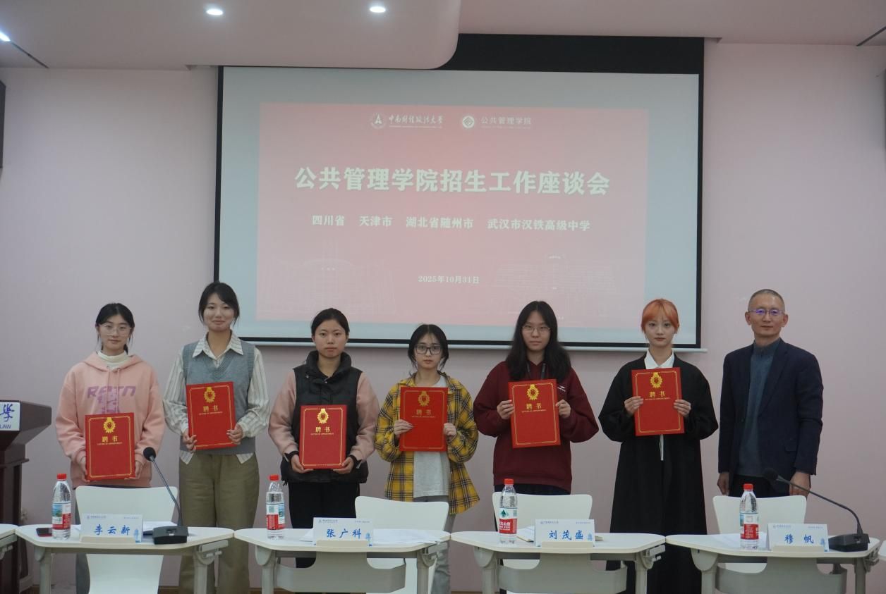 新闻网讯(学生通讯员 周颖 任怡然)为广泛收集师生对校院招生工作的宝贵意见,精准提升招生宣传实效与生源质量,10月31日下午,公共管理学院在首义校区思园一站式社区107室召开招生工作座谈会(四川省、天津市、湖北省随州市、武汉市汉铁高级中学专场)。公共管理学院院长张广科、党委副书记刘茂盛、党委委员李云新,教师代表梁辉、郭圣乾、王军鹏、王琪汇,辅导员李海楠、石玉以及18名新生代表共同参会,本次座谈会特邀本科生院招生工作办公室穆帆、杨安琪参加,会议由李云新主持。