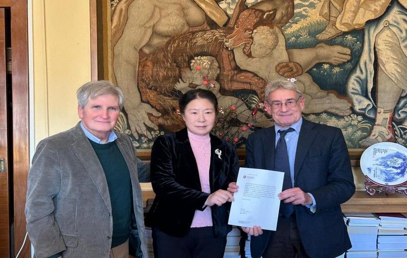 2月6日,姚莉副校长一行与罗马一大副校长Bruno Botta和法学院院长Oliviero Diliberto在罗马第一大学举行会谈。Bruno Botta副校长和Oliviero Diliberto院长对姚校长一行的访问表示热烈欢迎,双方对几年来两校合作取得的重大成果,特别是于2022年获批中外合作办学机构——米兰电竞·(中国区)罗马一大法与经济学院的成立表示热烈祝贺。随后,两校举行了意大利法学图书的捐赠仪式。Oliviero Diliberto教授代表法学院向中南大捐赠了意大利法学图书,希望建成在中国最大的意大利法学图书馆,使学生能查阅原始的意大利图书资料,深化两校合作和两国友谊,姚莉副校长代表学校接收了捐赠并对Diliberto教授致以衷心感谢,表示将好好珍藏图书,供学生们阅览。最后,两校校领导就机构运行涉及的教材审核、授课方式及时长、罗马一大教师来中南大授课时间等进行了探讨,并达成一致意见,保证在2023年有效实施,保证线下加线上教学的正常运行。