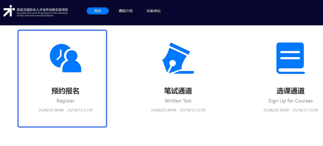 请各位通过资格审查的同学(名单见附件)关注微信公众号【高层次国际化人才培养加油站】,并于10月6日之前完成报名、线上笔试,以及课程预选。操作方法如下: