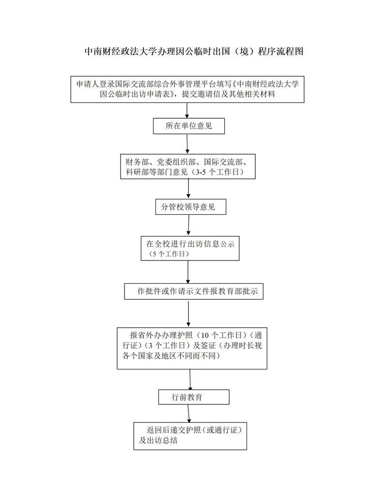 中南财经政法大学办理因公临时出国(境)程序流程图