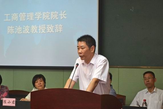 接着,院长陈池波教授代表学院对全体学员致欢迎辞。他从历史溯源、办学规模以及学科资源等方面向学员们展示了工商学院的独特魅力和学科优势。他表示,承办这次培训,一方面使得老师们获得了与企业管理人员交流沟通的机会,另一方面也尽到了学校服务社会的职责。他表示,本次培训班学院深感责任重大,学院一定认真听取学员意见,细致做好生活服务,严格按照教学计划的要求,精心授课,让每位学员都学有所成。