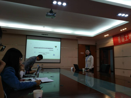 我院土地资源管理专业硕士生受邀在分会场做了学术报告,其中硕士生刘紫茵作了《农地城市流转效率评价及影响因素研究—以河北省为例》论文报告,硕士生沈谦作了《基于生态系统服务外溢的湖北省耕地生态补偿优先序研究》论文报告,硕士生王聪聪作了《差别化土地管理研究文献综述》论文报告,硕士生严婉玉作了《居民偏好分类视角下耕地生态系统服务价值研究》论文报告,硕士生黄玉浩作了《村宅基地集约利用分析—基于生态文明视角研究》论文报告。在分会场中,我院参会硕士生同众多与会代表进行了广泛而深入地探讨。