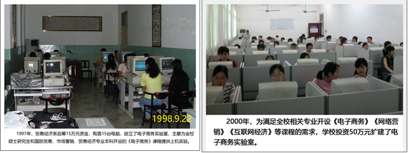 1997年,我校在全校硕士研究生中开设了《电子商务》。1998年,国际贸易、市场营销和贸易经济等专业将《电子商务》纳入本科全程培养方案,并陆续在这些专业开设《网络营销》《网络经济分析》《EDI在国际贸易中的应用》等专业课程。