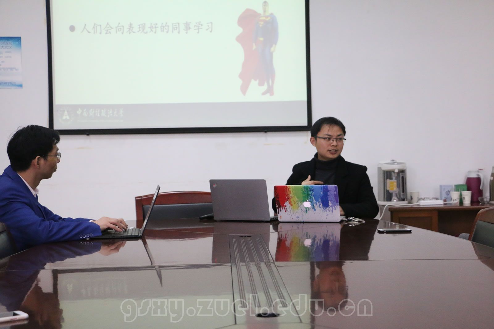 我院2019年第4期(总第43期)文泉分享会,于2019年4月4日中午12点半在文泉会议室成功举行。本次主讲人为汤一鹏副教授。分享的主题是“国家自科基金研究交流:研究兴趣与项目走向的困惑”。我院诸多老师参加了这次分享会,分享会由毛江华副教授主持。本次分享会包含两部分内容,第一部分汤老师结合本人正在执行的国家自然科学基金项目《真心能换来什么?人际真诚对团队地位影响的研究》的研究进展分享了自己的研究,第二部分是课题相关的兴趣的延展以及就项目执行过程中的困惑进行交流。