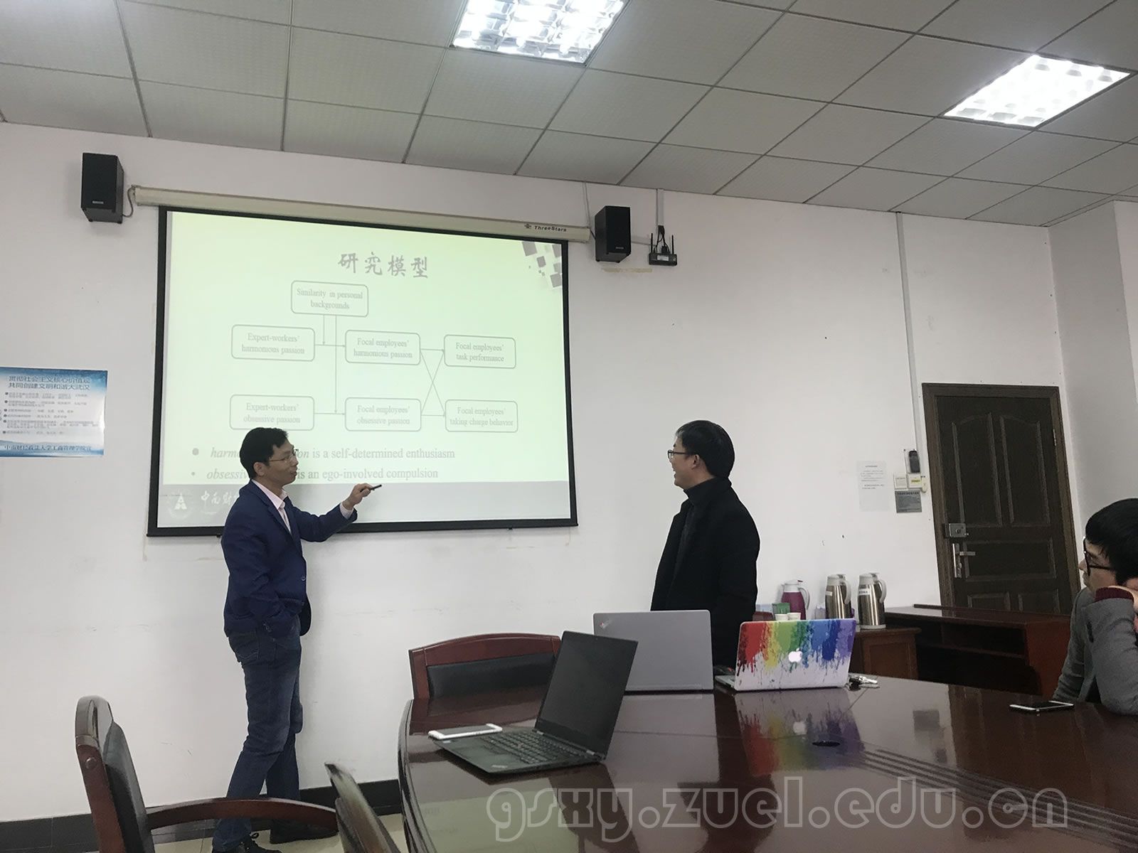 最后,分享会进入第二个环节,汤老师也介绍了其他兴趣所在的项目,提出对研究兴趣和项目走向之间的进行取舍的困惑。在场老师积极讨论,费显政教授提出了相关建议,一是汤老师的研究方法有类似的地方,可以相互融合;二是所研究的都是平等成员之间的绩效;三是所研究的都是情绪、情感之间的溢出效应,彼此之间积极促进的影响。即二者之间有相关联之处,可以相互融合借鉴。分享会接近尾声,诸位老师表达出此次讲座受益匪浅,热烈欢迎汤老师的加入。本次文泉分享会圆满结束。