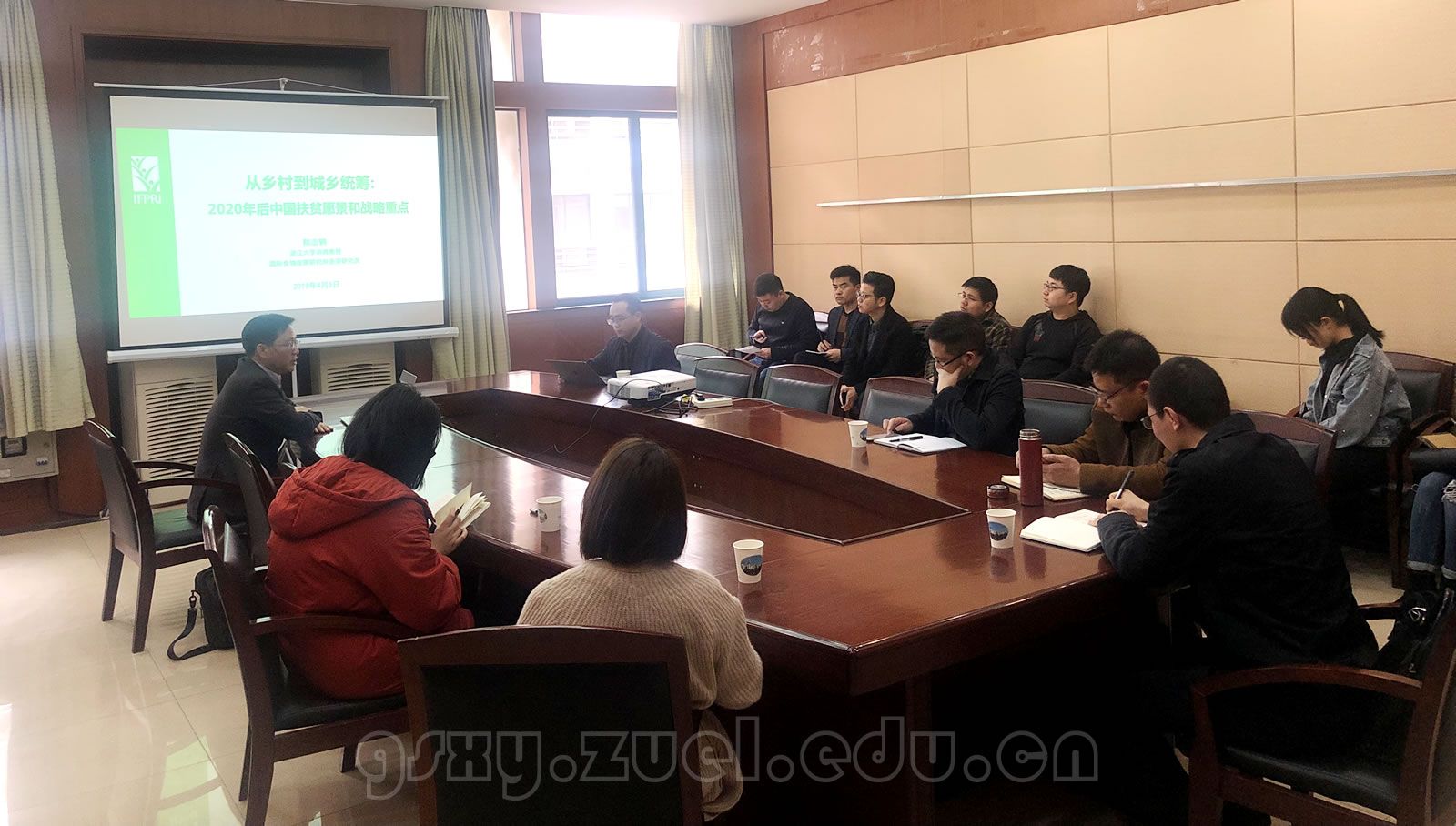2019年4月3日上午十点,由工商管理学院主办,农业经济管理系承办的南湖农经论坛2019年第4期(总第23期)在文泉楼北303会议室成功召开。本次论坛由工商管理学院副院长吴海涛教授主持,来自浙江大学、中国农村发展研究院国际院长陈志钢教授,以《从乡村到城乡统筹:2020年后中国扶贫愿景和战略重点》为主题带来了一场精彩纷呈的学术讲座,工商管理学院农业经济管理系田云副教授以及20多名博士、硕士研究生参加本次讲座。