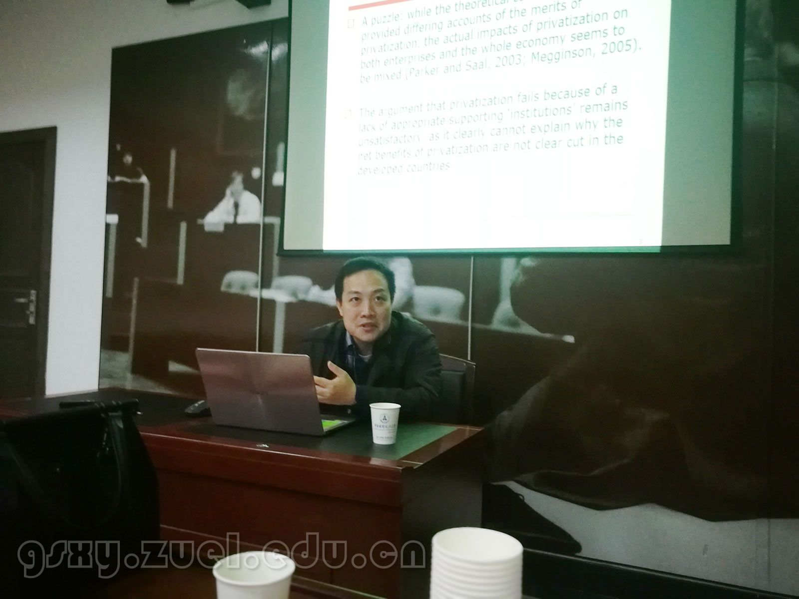 享受各种各样的排他性优惠待遇,由于这些优惠待遇直接关系到所有企业的利润,因此企业都会积极地对政府官员展开游说。其次,通过研究得出了当国有企业的国有股权比重较低,即企业的民营化程度较高时,企业游说的结果是国有企业的优惠待遇增加,使得国有企业从原本有利的竞争环境中进一步“获利”,出现“国进民退”;相反,当国有企业的国有股权比重较高时,企业游说的结果是国有企业的优惠待遇减少,使得国有企业从原本有利的竞争环境中“获利”减少,出现“国退民进”。最后,在提问环节中师生踊跃提问,与李杰教授探讨了国有企业的其他相关问题,营造了良好的学术交流氛围。
