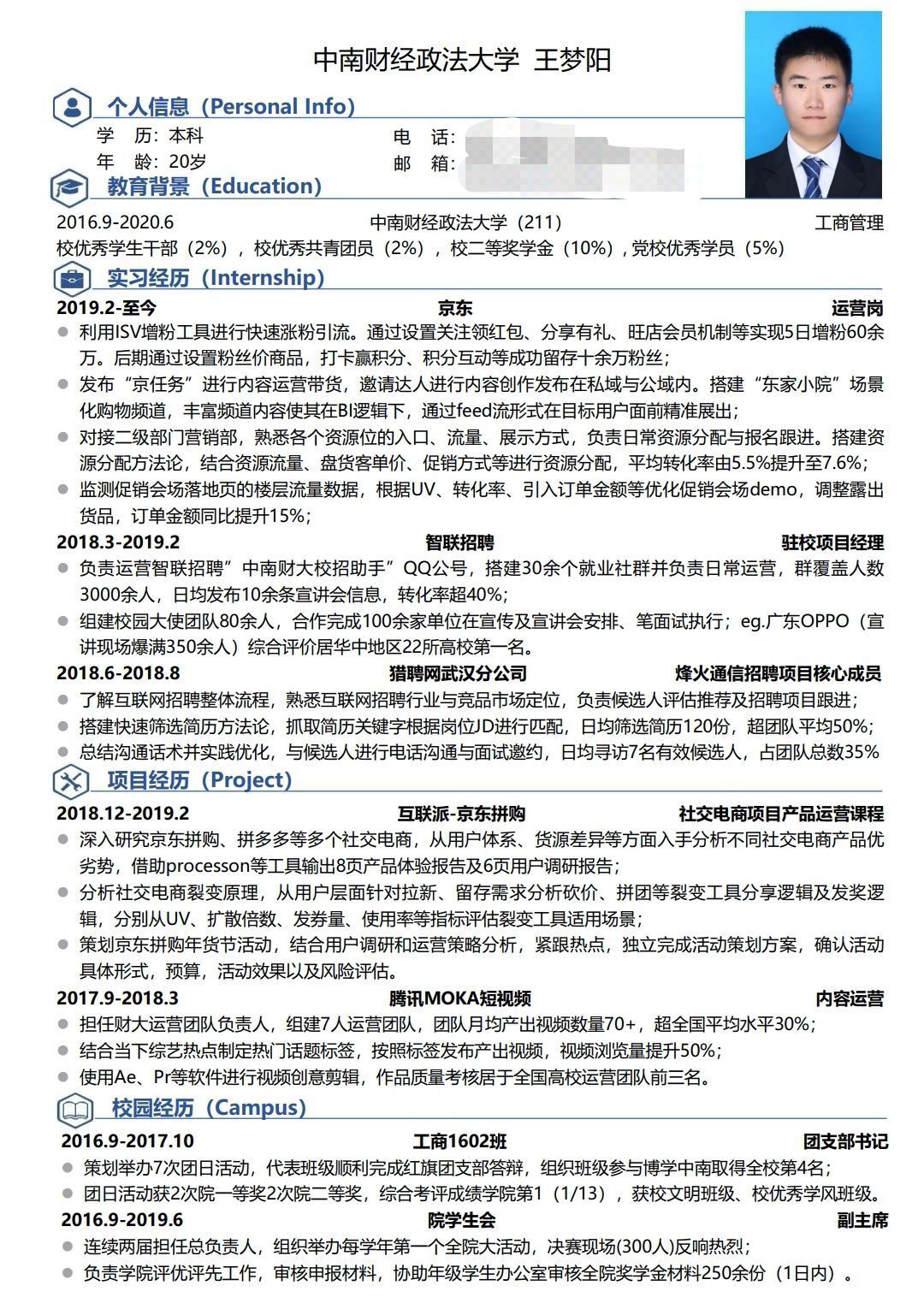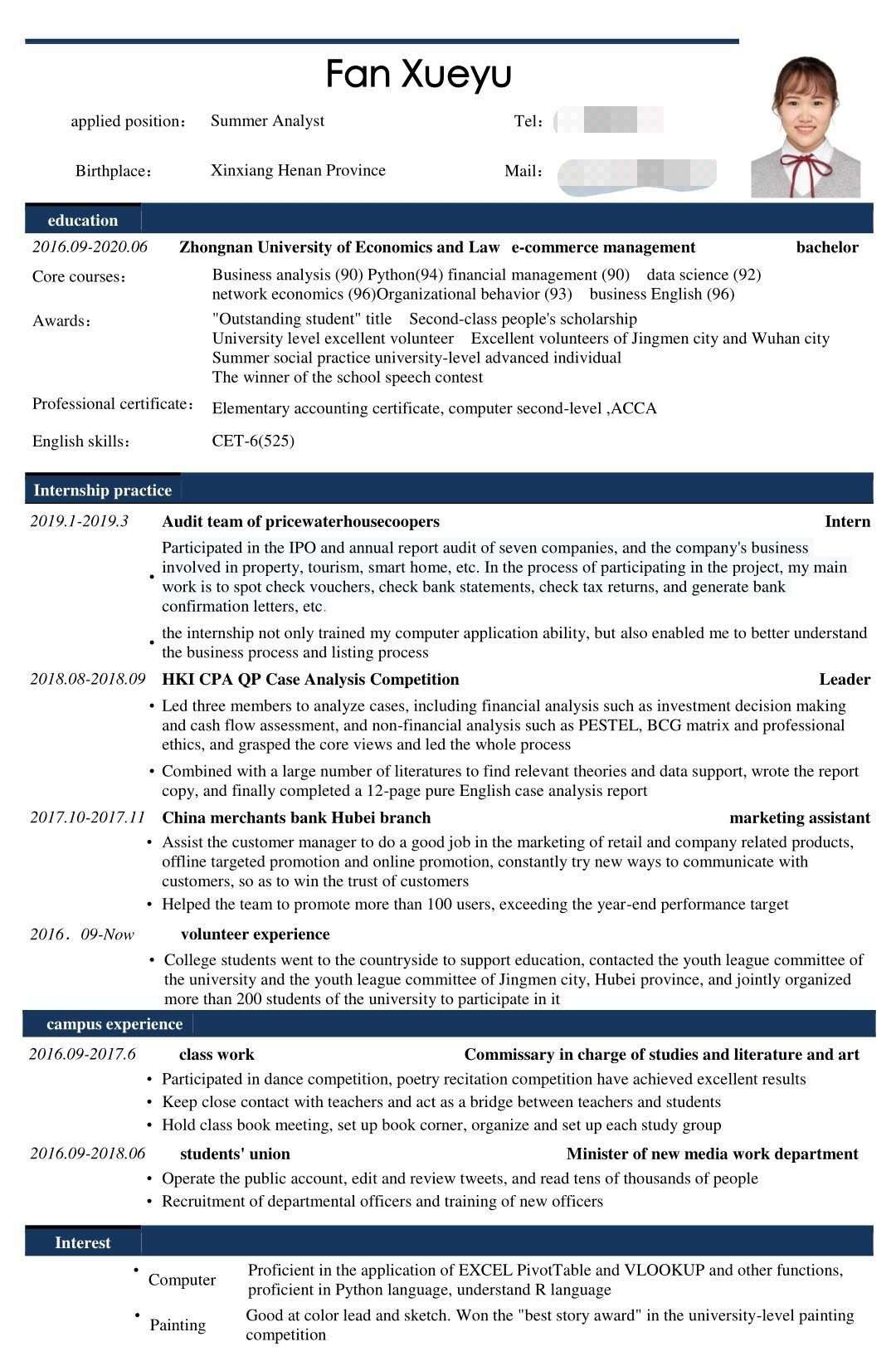 部分优秀简历展示: