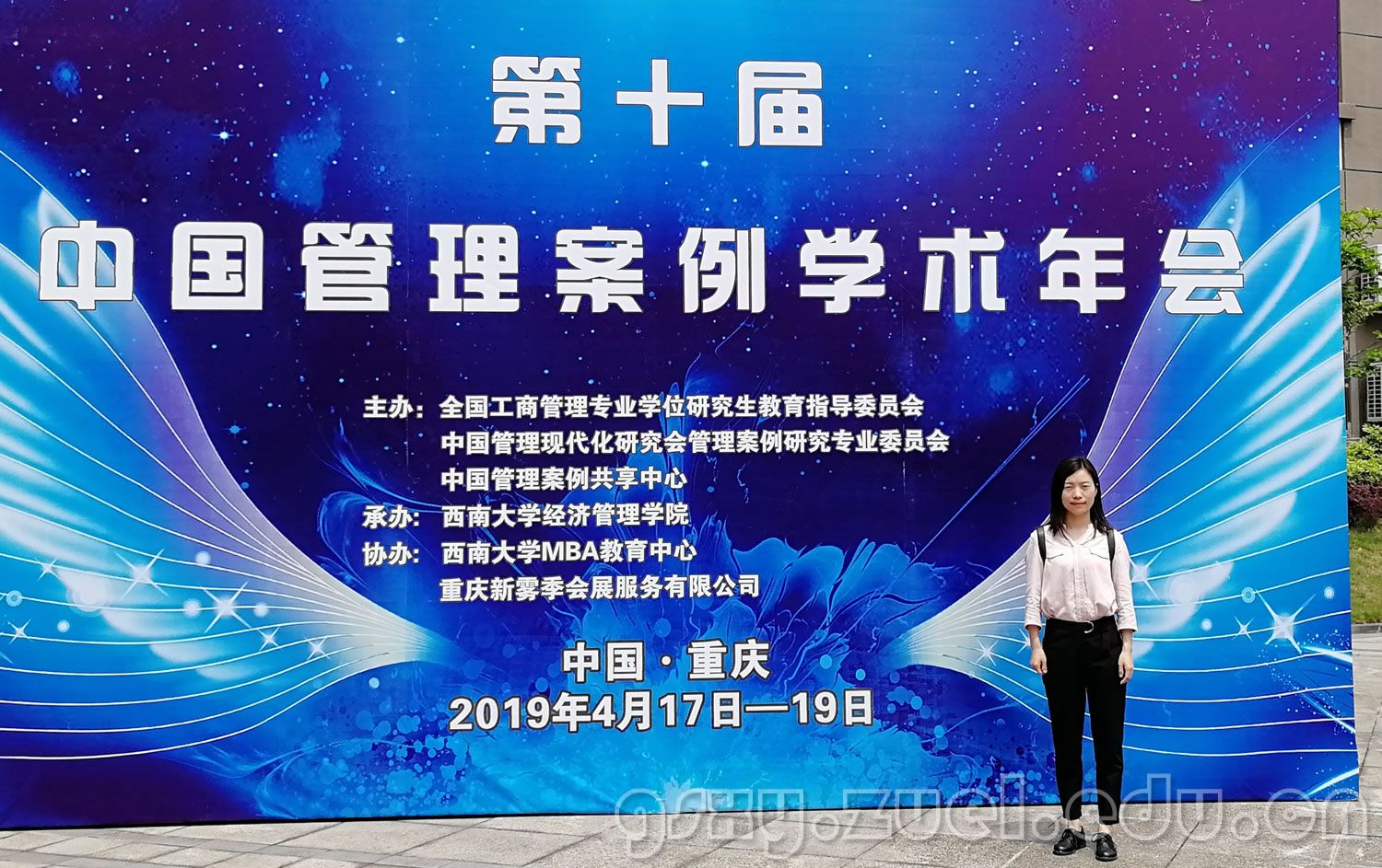 (通讯员:郑行之 王芳)第十届“中国管理案例学术年会”于2019年4月18日-19日在重庆西南大学隆重举行,本届年会吸引了全国百余所高校的三百余名专家学者和研究生参加,我院人力资源管理系17级硕士研究生郑行之、王芳同学提交了会议论文并赴现场参会。