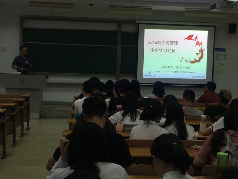 (通讯员:吕飞 唐尧)2019年6月13日下午2:00,工商管理系在文泰楼303教室举办了2016级本科生实习动员大会,工商管理系万华和吕飞两位老师、实习指导老师唐尧、实习单位代表武汉烽火普天信息技术有限公司首席数据科学家胡华博士及工商管理16级全体学生参加了此次大会。