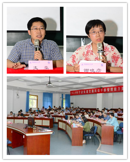 7月8日,宁波轨道交通科级干部管理能力提升培训班在我校首义校区文津楼101教室正式开班。宁波轨道交通集团组织人事部谢晓彦副总经理,我院副院长文豪教授,以及宁波轨道交通集团48名科级干部出席开班仪式。开班仪式由我院培训部主任梁昌栋副教授主持。