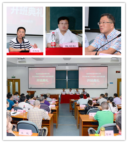 8月20日上午,杭州市区县2019年审计干部能力提升培训班开班仪式在我校首义校区文津楼举行,杭州市西湖区审计局阮劲松局长、富阳区审计局盛建龙副局长、我院副院长郑家喜教授出席,来自杭州市区县6个单位的90余名审计干部参加开班典礼。开班仪式由院培训部主任梁昌栋副教授主持。