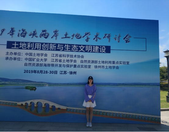 8月28日—8月30日,2019年海峡两岸土地学术研讨会在江苏省徐州市成功召开。本次会议由中国土地学会、江苏省科学技术协会主办,中国矿业大学环境与测绘学院、江苏省土地学会、自然资源部土地利用重点实验室、自然资源部海岸带开发与保护重点实验室承办。全国政协委员、提案委员会委员、中国土地学会理事长及副理事长等理事会成员、学会学术工作委员会全体成员、学会各分支机构代表、各省(区,市)土地学会领导和专家、学者、部机关有关司局、部直属单位有关负责同志以及台湾地区各董事、院长等专家学者参加了会议。我院土地资源管理专业硕士研究生严婉玉受邀参加了本次会议。