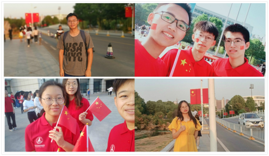 10月1日上午,各党支部成员以各种形式收看庆祝中华人民共和国成立70周年大会实况转播。这次阅兵是最近几次阅兵中规模最大的一次,军人们威武刚强的队列式表演和一批批先进武器技术充分显现出祖国的强大。学生们在观看过程中不断发出欢呼声和掌声,为国家取得的伟大成就感到自豪国庆假期期间,党支部成员在校园里留下与国旗的合照,抒发自己的爱国情感,祝贺祖国七十岁生日,展现出当代大学生的青春活力。在旅途中,同学们也不忘初心,积极参与国庆之中,或者手持国旗,带着国旗走访家乡,或者在游历祖国河山时寻找国旗景观,留下对祖国的祝福,以图文并茂的方式表达爱国之情。