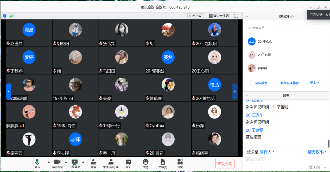 (通讯员 曹忠亮)2020年6月23日,工商管理学院举办了2020届毕业生座谈会,会上毕业生代表提议同专业跨年级的同学联动举办就业实习分享会,高年级学生向低年级学生分享就业信息与经验。为积极响应会上提议,7月19日晚上7:30,资产评估专业组织召开就业实习线上分享会。会议由2018级资产评估班长曹忠亮主持,此次会议共有18级毕业生和19级、20级资产评估在校生近60人参与。