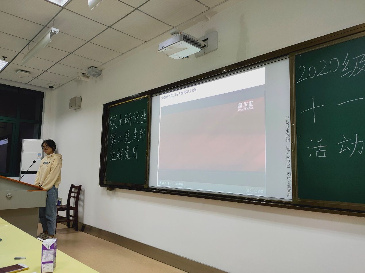 (通讯员 黄恺弘)十九届五中全会的余热还未褪去,为学习先进理论知识,充分发扬党员风采,2020年11月20日晚,工商管理学院2020级硕士研究生第一、第二党支部齐聚文澴楼,开展主题为“十九届五中全会精神伴我行”的主题党日活动。本次会议由第一、第二党支部书记黄恺弘、蔡会仪主持,全体党员参加。