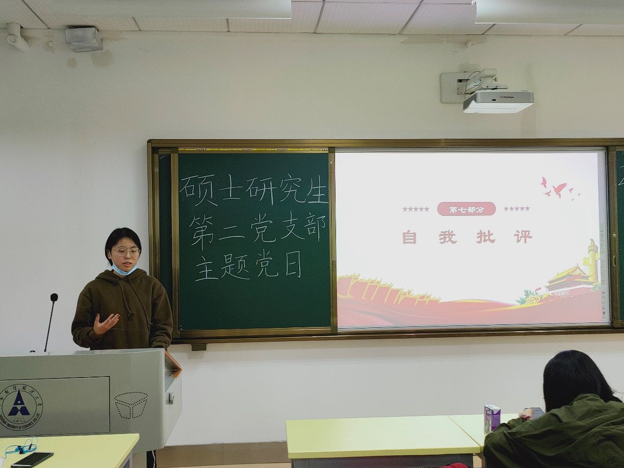 在愉快的互动答题之后,便进入了组间分享环节。在此环节一共涉及三个部分:对十九届五中全会的心得感悟、对支部建设的建议、自我批评。经过热烈的组内讨论,每组派出了多位同学向大家进行了相关话题的分享。从大家的发言中可以看到,十九届五中全会带给大家的精神激励极大,是极为有力的精神食粮,各位同志对祖国的未来抱以无比坚定的信念。同时也有不少同学对支部的建设提出了极为深刻、独到的建议,如:理论与实践相结合,以后的党日活动可以加入实践环节,如扫烈士墓、参观校史馆、义务劳动等;党建文件的处理需要更加规范化、精细化,真正做到权利到位,责任落实……这一条条提议恰到好处,也深深落入了支委的心中,支委们也随即表示会仔细听取各位的宝贵意见,并在以后的支部建设中得以反馈。自我批评方面,各位党员同志毫不端着,开展了精准且深刻的自我反省,并主动要求在座的各位党员结伴监督,以谋求更好的发展,提升核心竞争力。