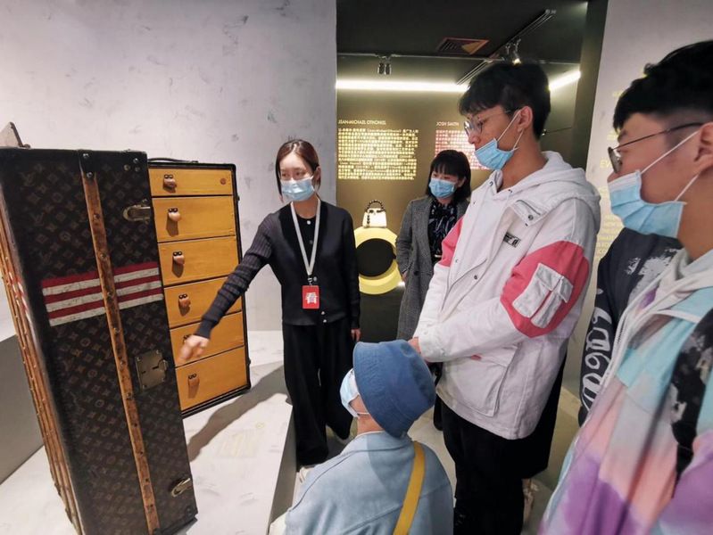 (学生记者马一新,崔戈凡)2020年11月26日《个人形象管理》课堂的部分学生在授课教师刘璠的带领下,受邀前往武汉国际广场参观《SEE LV》沉浸体验展。本次LV全球巡展首站定在武汉,是该集团为了助力英雄之城武汉经济复苏与发展。《个人形象管理》授课教师刘璠接到LV集团邀请,将课堂融入展览之中,以专场讲解的方式让同学们近距离感受艺术与时尚的变迁,专业讲解人员接待了师生一行。