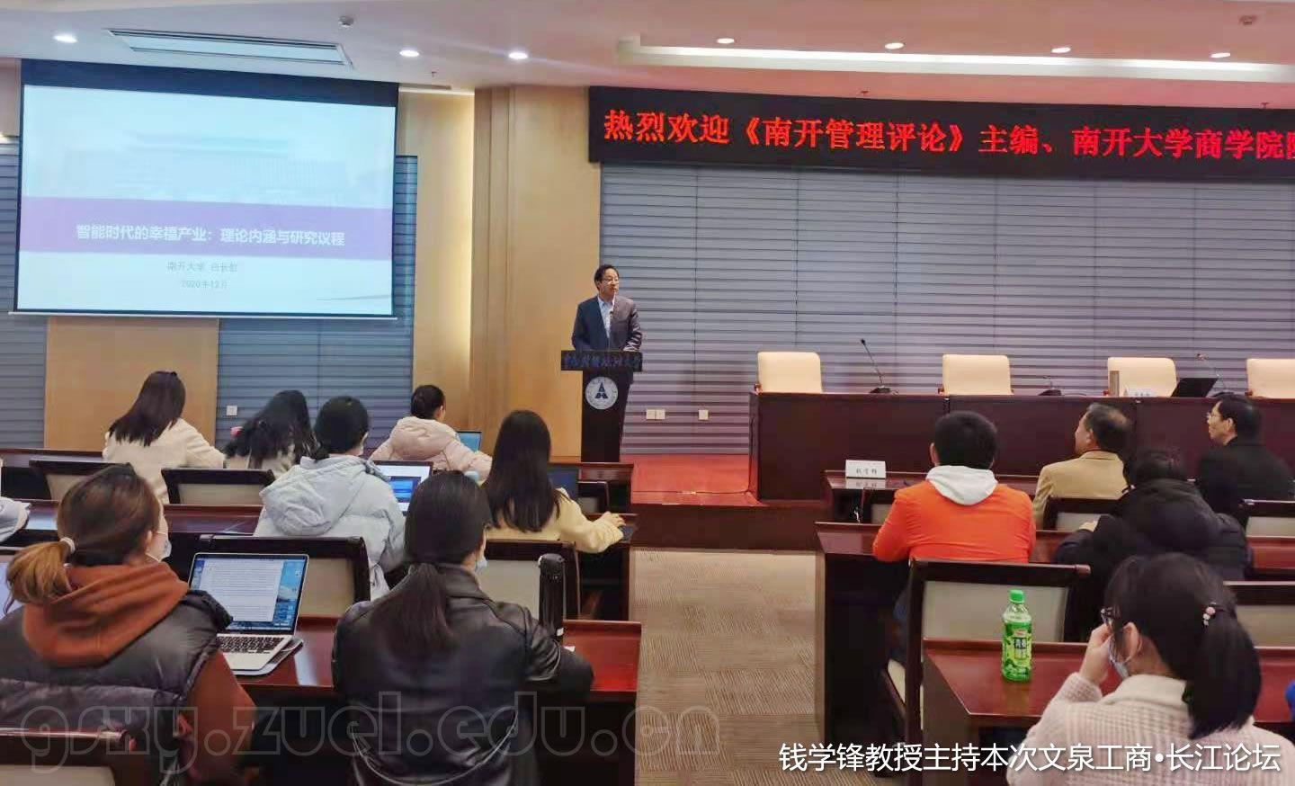 主题是“智能时代的幸福产业:理论内涵与研究议程”,讲座由我院院长钱学锋教授主持,副院长费显政教授以及院内多名老师学生参与了本次讲座,现场座无虚席。