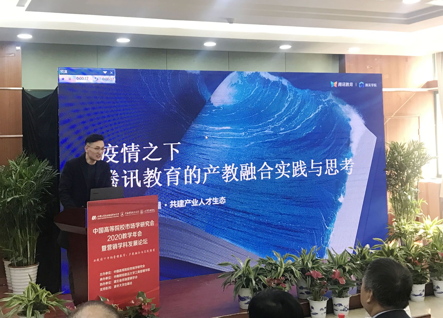接下来,腾实学院总经理钱栩磊以“疫情之下腾讯教育的产教融合实践与思考”为题,