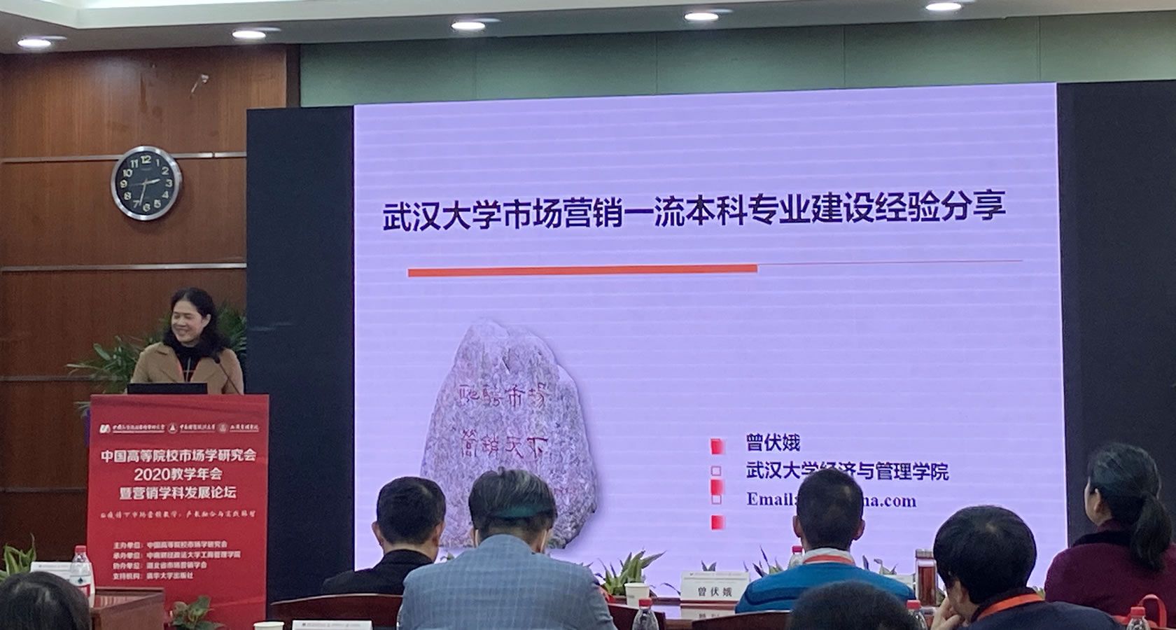 珞珈特聘教授、教育部新世纪人才、武汉大学博士生导师曾伏娥教授带来了《武汉大学市场营销一流本科专业建设》的经验分享。曾教授强调,要夯实学生的学科素养并不断提升学生的研究能力。她建议通过构建学科师资团队、课程资源、国际合作和实习平台这四大资源体系以共促营销学科的建设。另外,曾教授强调让理论研究和应用研究深入学生的专业培养方案,着力培育兼具研究能力和实践能力的全面型人才。