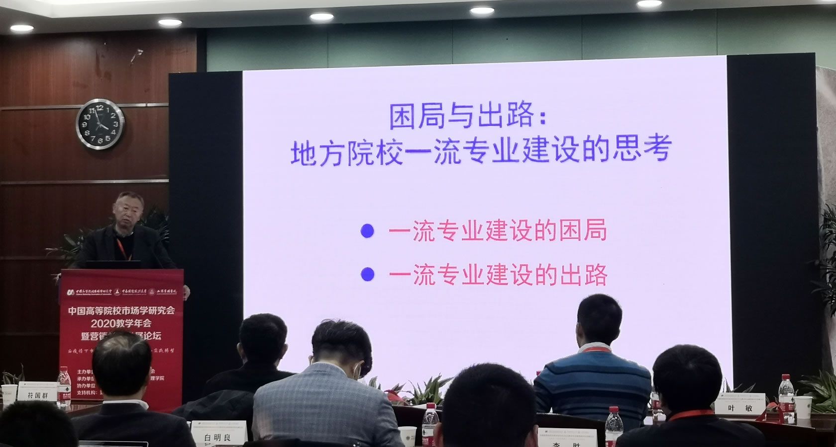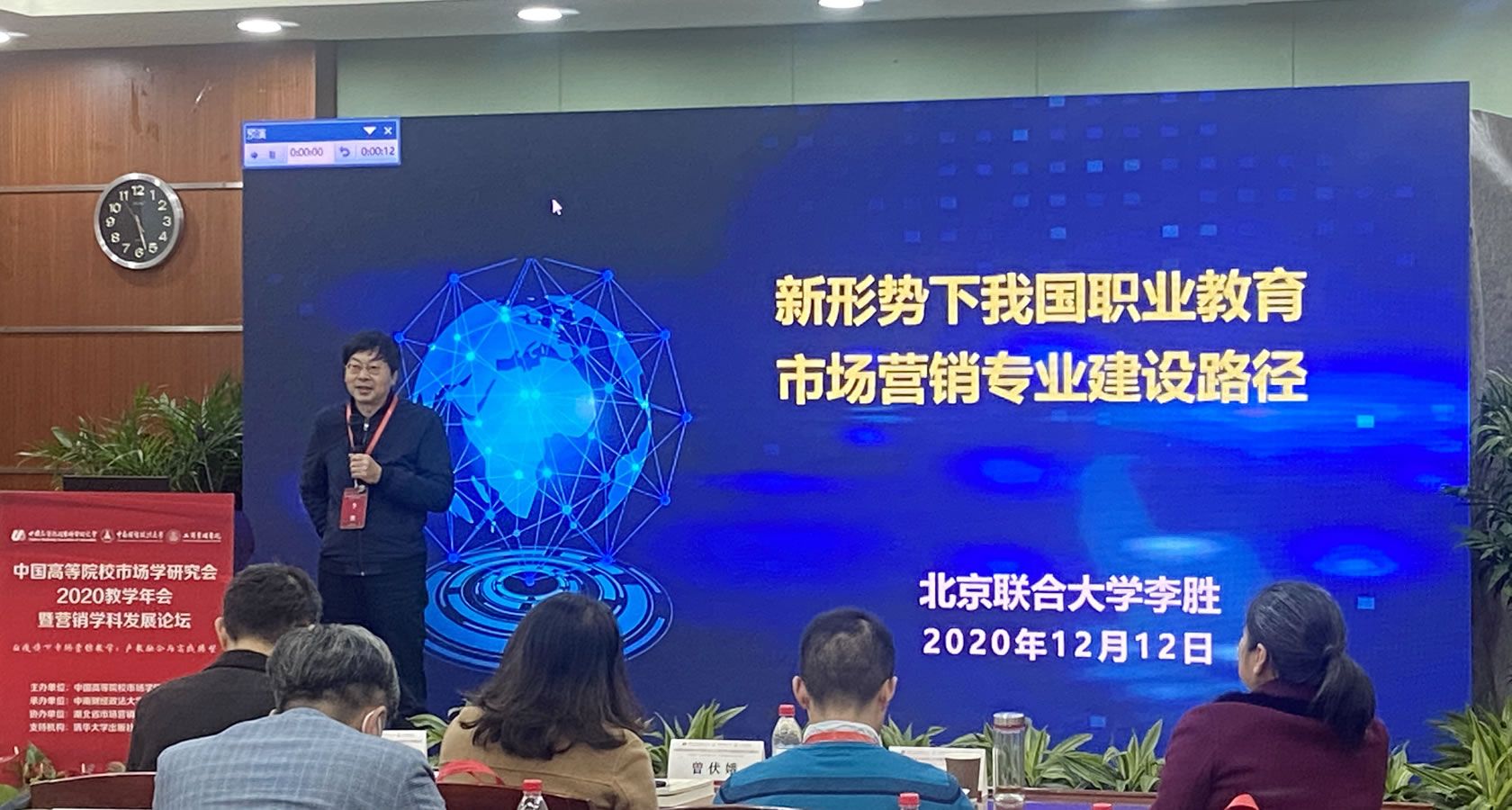 最后,北京联合大学应用科技学院市场营销专业主任、市场营销专李胜教授以《新形势下我国职业教育市场营销专业建设路径》为主题介绍了地方性职业院校在营销学科推进方面所做的工作以及学校的基本情况。李教授介绍了全国开设市场营销专业的院校数量统计以及选用的专业调研的大数据方法。据他介绍,北京联合大学采用课程建设与改革的专创融合思路,强调知识点与真项目理实一体,以及采用校企合作协同育人的方式进行教学工作。最后李胜教授对“新形势”进行了阐述特别强调了对新职业、新岗位的认识,赢得了场下的阵阵掌声。