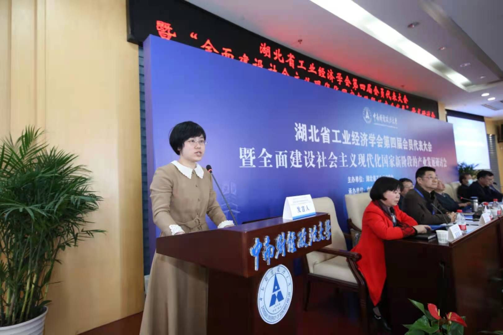 随后,湖北省社会科学联合会学会部副部长文嵘发表讲话,她首先高度肯定了此次大会,代表省社科联对于第三届会长对产业经济的发展做出的贡献表示诚挚的谢意,对新一届学会领导班子表达了衷心的祝福,激励大家要在习近平新时代中国特色社会主义思想的领导下,坚持马克思主义在意识形态领域的指导地位,认真贯彻党的十九届五中全会精神。最后,她希望学会成员在新一届领导班子的带领下,继续为谱写新时代湖北高质量发展贡献力量。