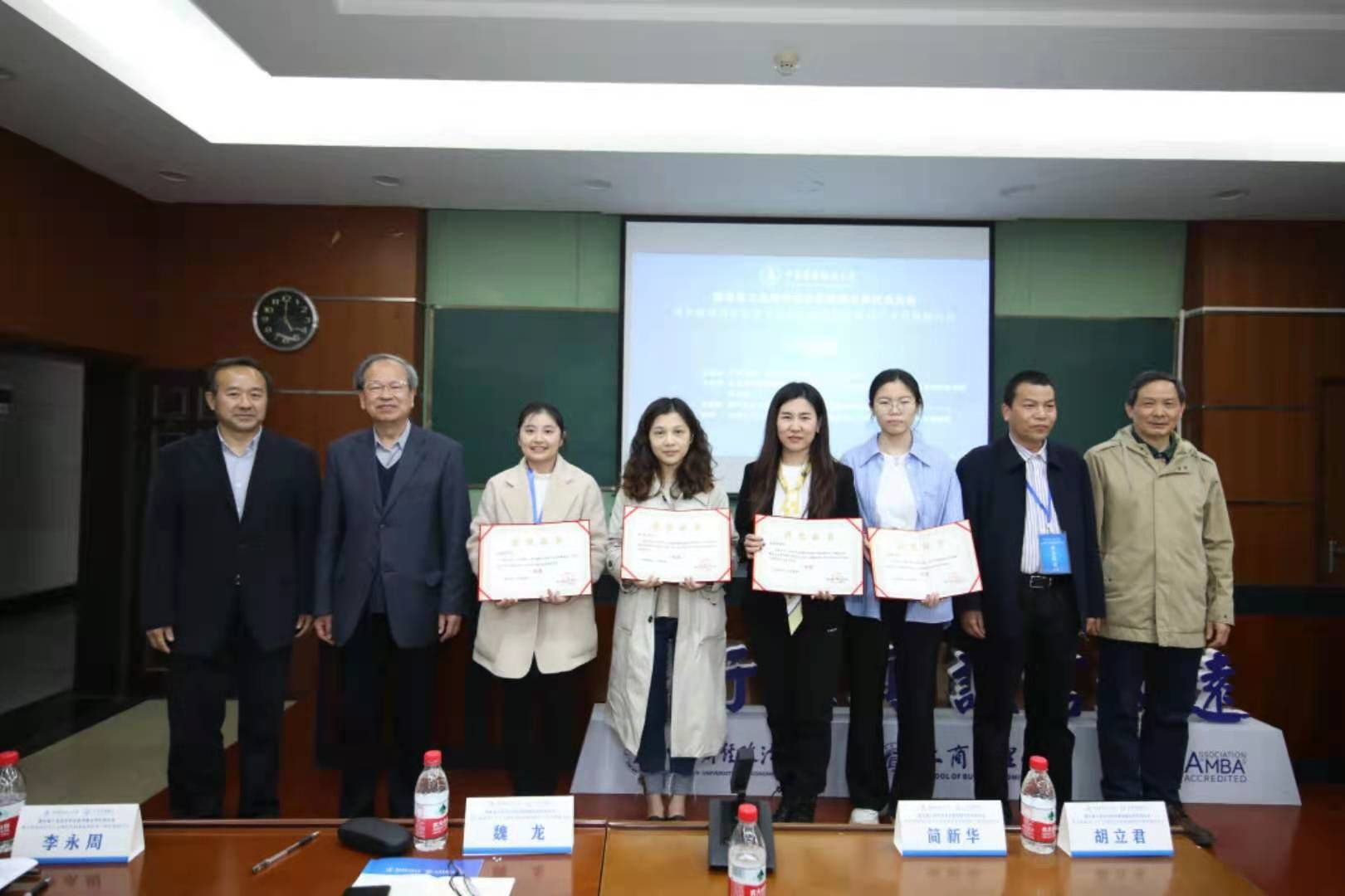 第二项流程是“优秀论文奖”颁奖仪式。此次学会年会共评出优秀论文一等奖4篇、二等奖7篇、三等奖12篇。新任会长胡立君、荣誉会长简新华、副会长魏龙、宋德勇、杨树旺、聂亚珍、李永周、杨艳琳、陈立敏、刘树林等人分别给获奖论文作者颁奖。