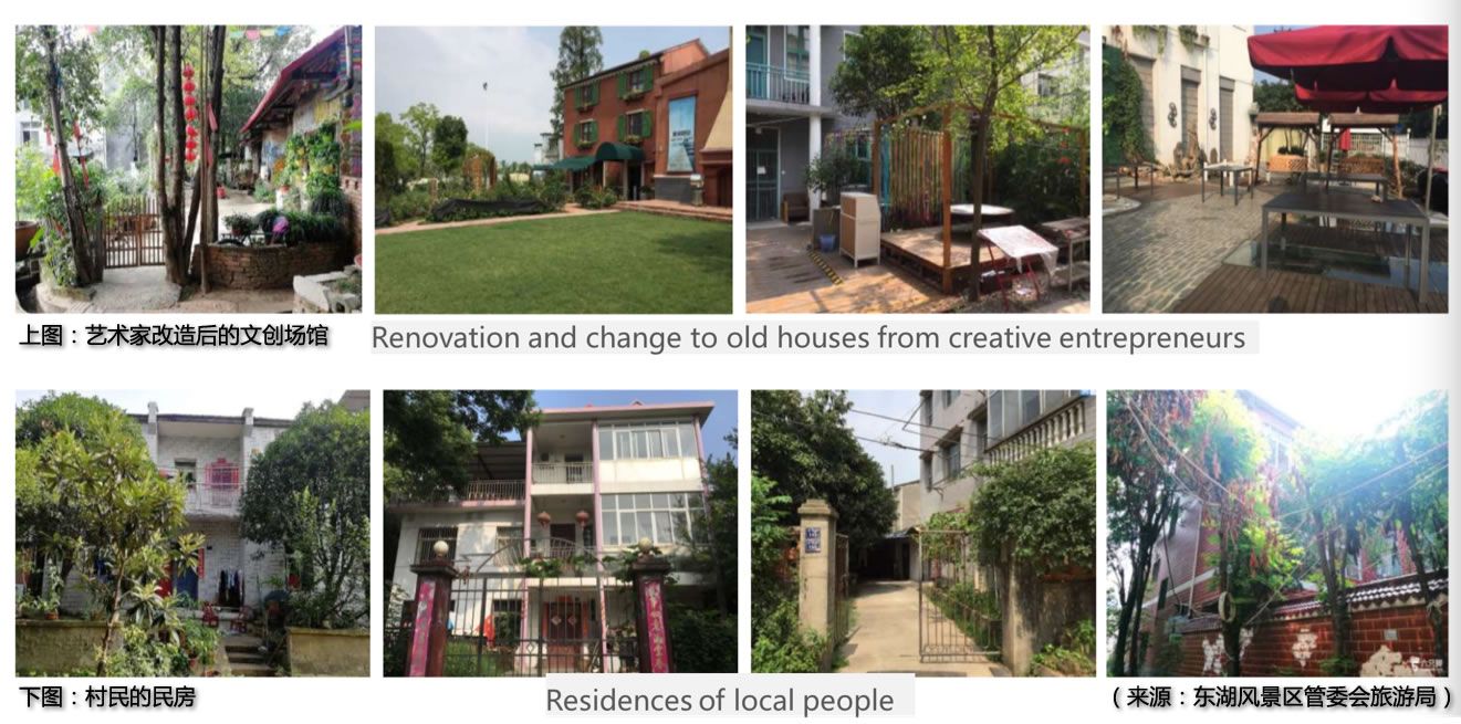 城中村是城市化的遗产,是城市居民体验乡村性和找到乡村记忆的最后场所。在城市化的进程中,乡土在不断被挤占被压缩,这不仅仅给城市生态空间带来威胁,也使人们缺乏精神的回归之处。现代城市文明需要将现代文明、生活方式和想象与乡土、传统的联系重新建立起来。这种联系的重构需要城市的乡土空间作为载体,创意化和旅游化是构建多层次城市空间的手段,乡土空间的创意化使原本世俗的城中村成为遗产、怀旧、审美和传统的代表,增加了乡土空间的吸引力,也为人们在城市中找到了诗意的栖居之地。大李村是城中村中的幸运儿,因为地处东湖,具有先天的生态优势和保护伞。这里的文创企业主具有对原真性生活方式的需求,通过自己的力量将大李村营造成了城市乡土空间创意化的典型。