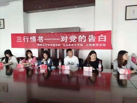 (通讯员 黄艳)喜迎建党一百年,4月28日下午,由新闻与文化传播学院主办,工商管理学院与马克思主义学院协办的“三行情书——对党的告白”活动决赛顺利举办。此次活动旨在引导同学们重温党的百年奋斗历程,铭记党的丰功伟绩,为党的百岁生日献上诚挚的祝福,坚定同学们“听党话、跟党走”的政治自觉。