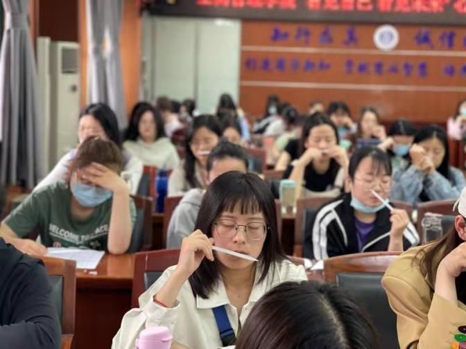 活动进入尾声,刘凤老师请其助理给每位同学发放带有植物萃取的芳香精油书签,吸嗅芳香书签的香气,有利于提升大脑的注意力,记忆力,消除疲惫感,益智醒脑。随着音乐“爱神”的响起,刘老师带领同学们冥想,让同学们在这场嗅觉与听觉的盛宴中以更加舒缓放松的状态,调节自己的情绪,思考自己的未来,更好的认识自己、拥抱自己。