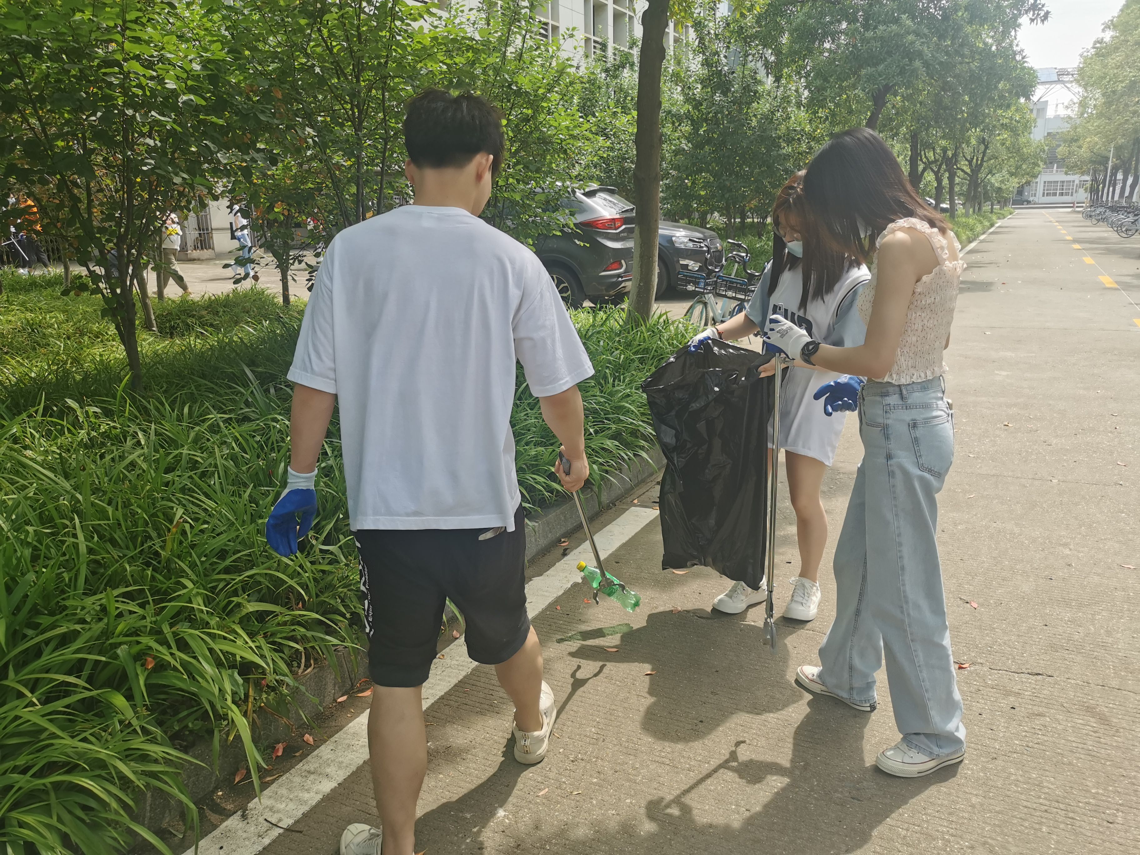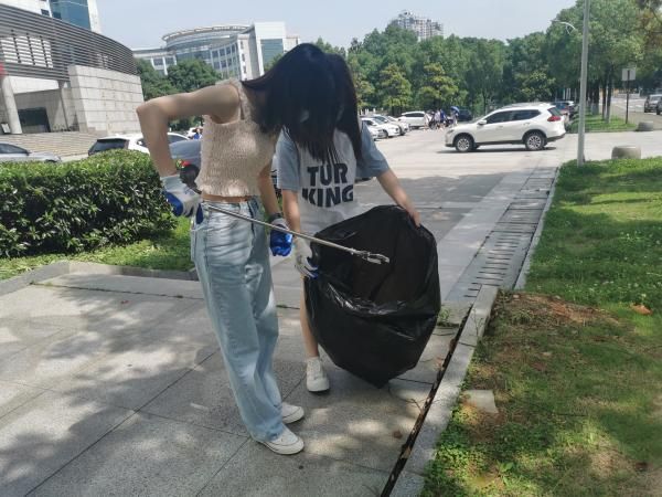 在劳动现场,积极分子们两两一组,一人手拿垃圾袋,一人手拿夹子,分工协作配合默契,对文泉楼和小球馆的广场、过道、绿化带等重点区域进行了全方位清理打扫。