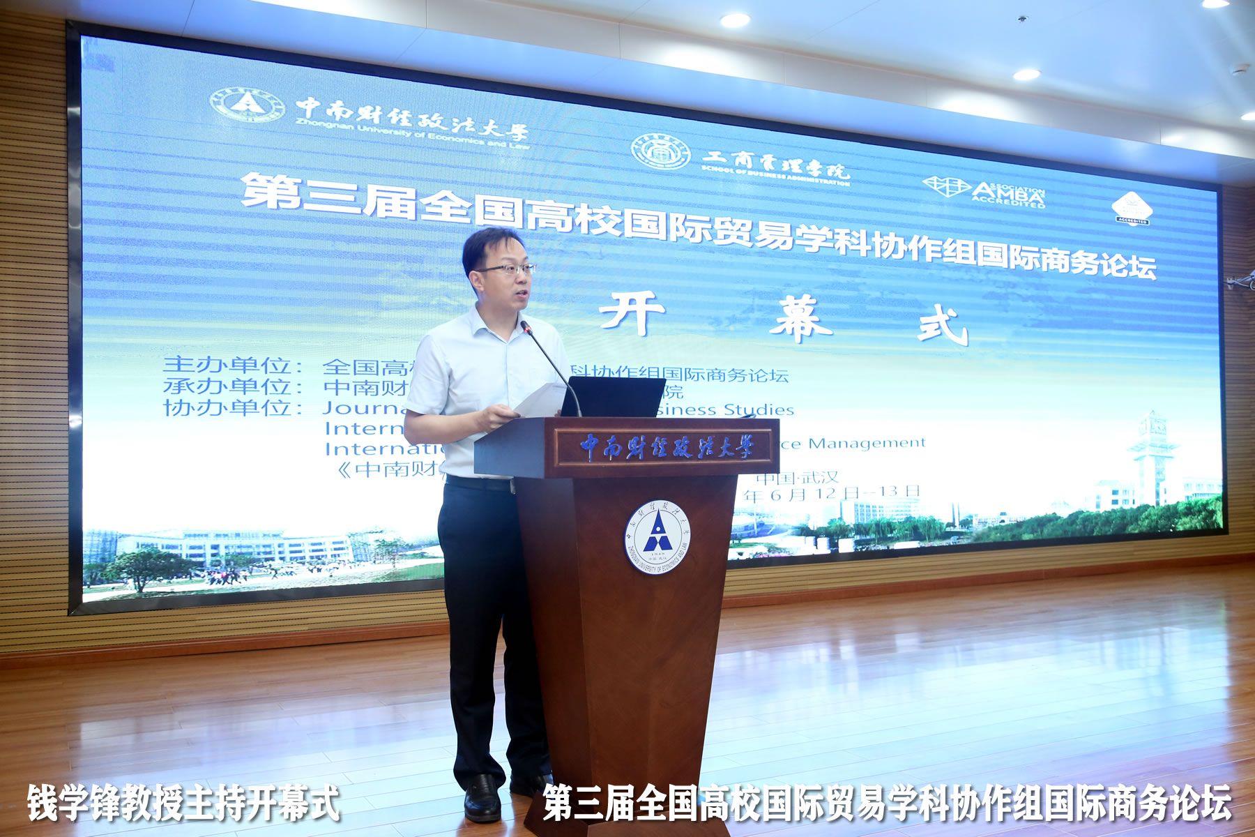 6月13日上午10:45,第三届全国高校国际贸易学科协作组国际商务论坛在文澴楼一楼同声传译室举办了隆重的主题报告和闭幕式,主题报告由全国高校国际贸易学科协作组国际商务论坛副秘书长、米兰电竞·(中国区)工商管理学院院长钱学锋教授主持。