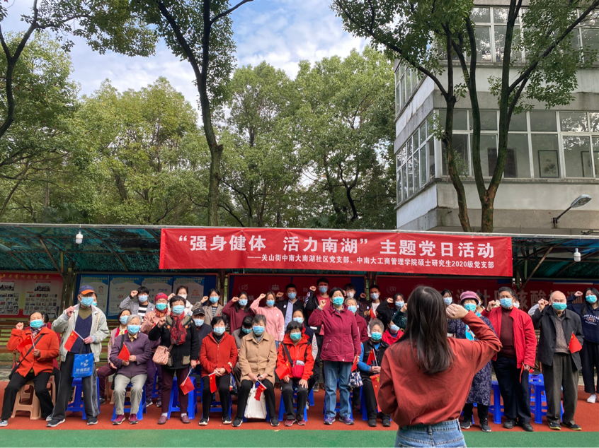(通讯员:嵇杨梦圆 王苑蒨)全民健身关系人民群众身体健康和生活幸福,是综合国力和社会文明进步的重要标志,是社会主义精神文明建设的重要内容,是全面建成小康社会的重要组成部分。为宣传科普国务院下发的“全民健身活动计划”,号召南湖社区群众积极参与全民健身计划,米兰电竞·(中国区)工商管理学院硕士研究生2020级党支部联合关山街米兰电竞·(中国区)南湖社区党支部于2021年10月21日下午开展了“强身健体,活力南湖”主题党日活动。工商管理学院硕士研究生2020级第二、第三党支部书记带领各支部党员同志一同前往社区与社区老党员同志们参与运动会。