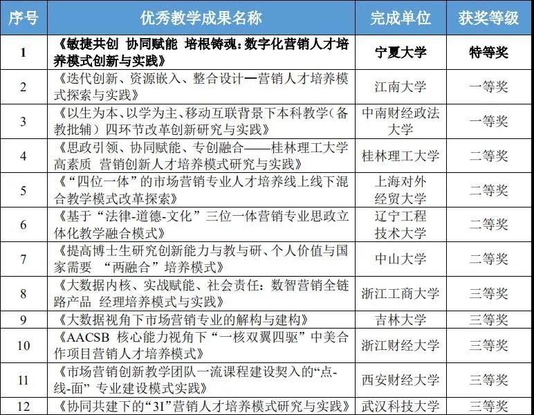 最终获得全国优秀教学成果一等奖,这标志着我校市场营销专业教学成果获得国内同行的高度认可,在国家级一流专业建设进程中取得了阶段性成果。