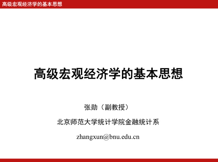 《高级宏观经济学》系列讲座主讲人张勋现任北京师范大学统计学院金融统计系副教授,主要研究方向为国民经济核算、发展经济学、教育经济学、数字金融等,曾在Applied EconomicsChina Economic Review等知名国际期刊及《经济研究》、《管理世界》、《数量经济技术经济研究》等国内权威期刊公开发表论文30余篇并作为负责人先后主持国家自然科学基金项目、北京市教育科学“十三五”规划重点课题等多项国家级和省部级课题